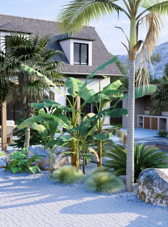Nous sélectionnons pour vous des plantes tropicales robustes et complémentaires, afin de créer un rendu luxuriant toute l’année, sans entretien compliqué.